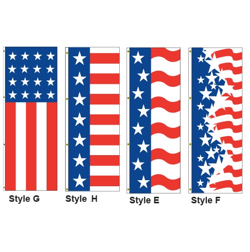 3′ x 8′ Color Flags . These triple stitched nylon drape flags have heavy duty bleached headers w/ grommets along the vertical side & come with zip tied for installation.