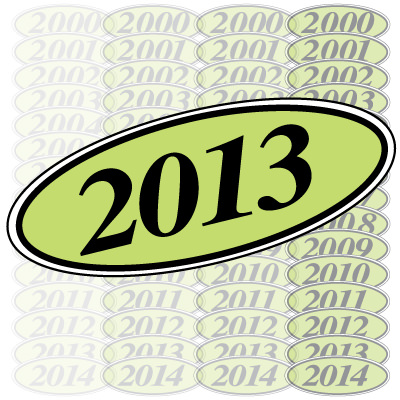 Chartreuse & Black oval, adhesive windshield year model sign. An inexpensive yet highly effective sales tool to advertise a year model! Sold by the dozen {12 per pack}. Size: 14″ long x 5 1/2″ tall. Neatly shrink wrapped in packs of a dozen with a chipboard backer to prevent curling during storage. Made of durable, waterproof vinyl, these bright, non-fade signs demand attention! Each sign is slit on the back for easy application. Removable adhesive allows easy, clean removal. Add features and promotions to the oval using our Arch Slogans