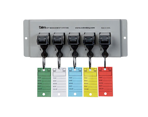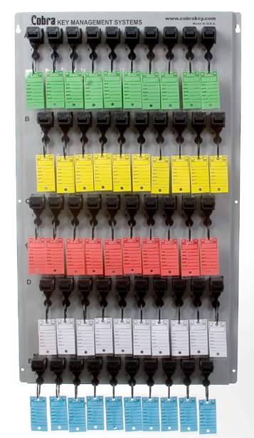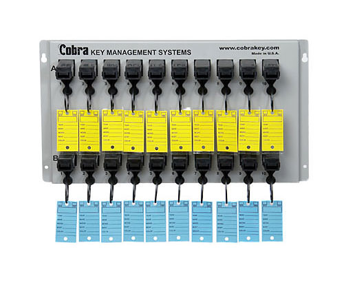 Save time and money on this tamper-resistant system that features offsetting rows. The keys and tags hang so they’re easy to read. Insert your numbered key into the lock and release a set of keys. When you return the keys to the lock, it releases your numbered key. Master key included to move keys quickly and efficiently.