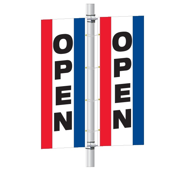 3′ X 8′ Red/White/Blue Slogan Flags are available in 18 different Slogans. Wording is Single Sided only, but reverse image is visible from back side. These triple stitched nylon drape flags have heavy duty bleached headers w/ grommets along the vertical side & pockets sewn top & bottom for light pole hardware (sold separately) come with zip tied for installation. Colored panels will ship as shown (Red/White/Blue) unless specified otherwise. Please call 800.755.2095 for custom colors