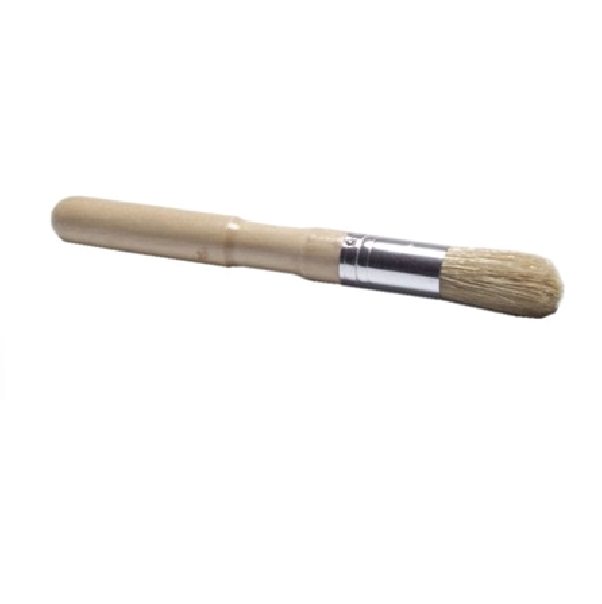 Round Dust Brush. 1.87 in. Beige nylon bristles set in tacked metal ferrule. For removal of dust and debris from hard to clean seams in auto dashboards, vents, radios and speakers. Overall length 8 in.