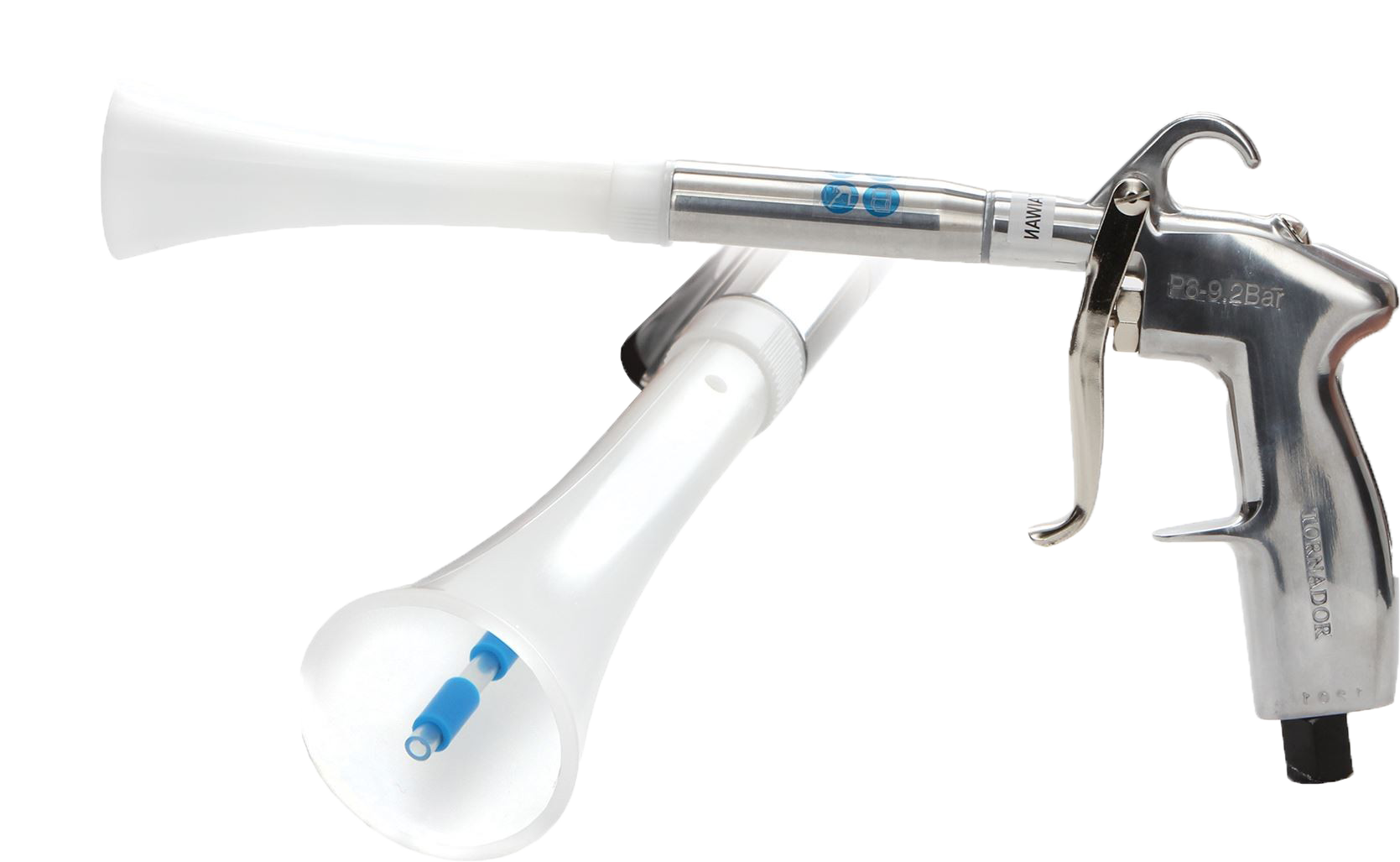 Tornador Blowout Gun lifts all the dirt and grime from carpets to ensure deep and total cleaning. Use the Tornador Blowout Tool to dry and dress wet engines after power washing and detailing.