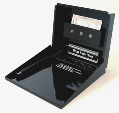 • Durable steel box with pull-down tray for customer convenience to fill out envelope