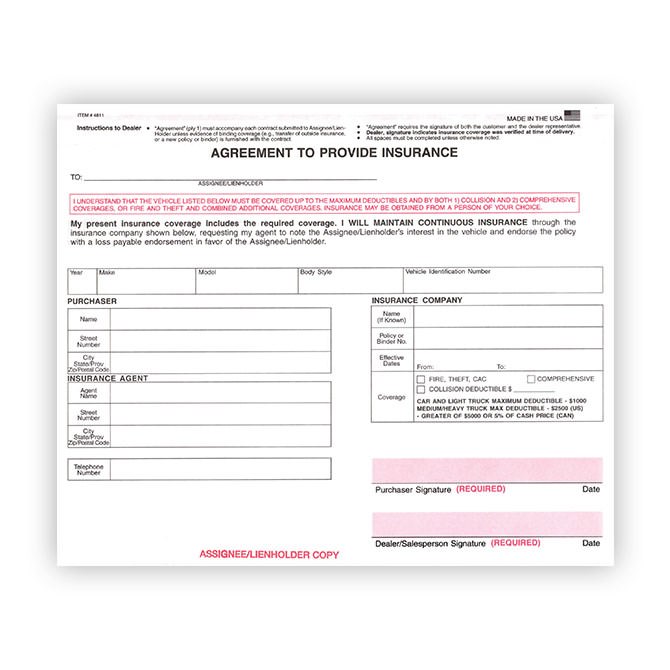 This form helps to ensure that all sold vehicles will have insurance. A True MUST HAVE
