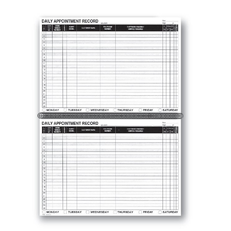 This coil bound book is an excellent way to track appointments and services required. Compact and complete.