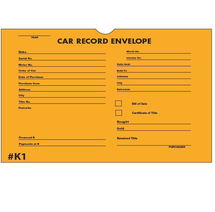 Vehicle Deal Envelopes / Deal Jackets