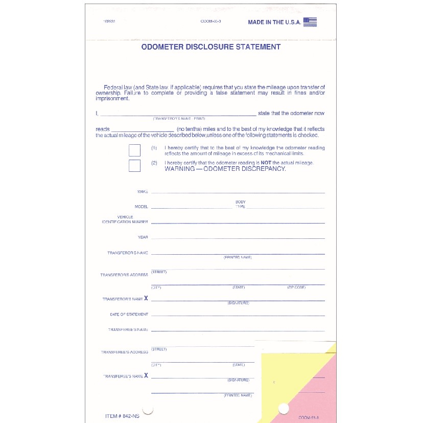 Odometer Statement ODO-65-3 #842-NS
